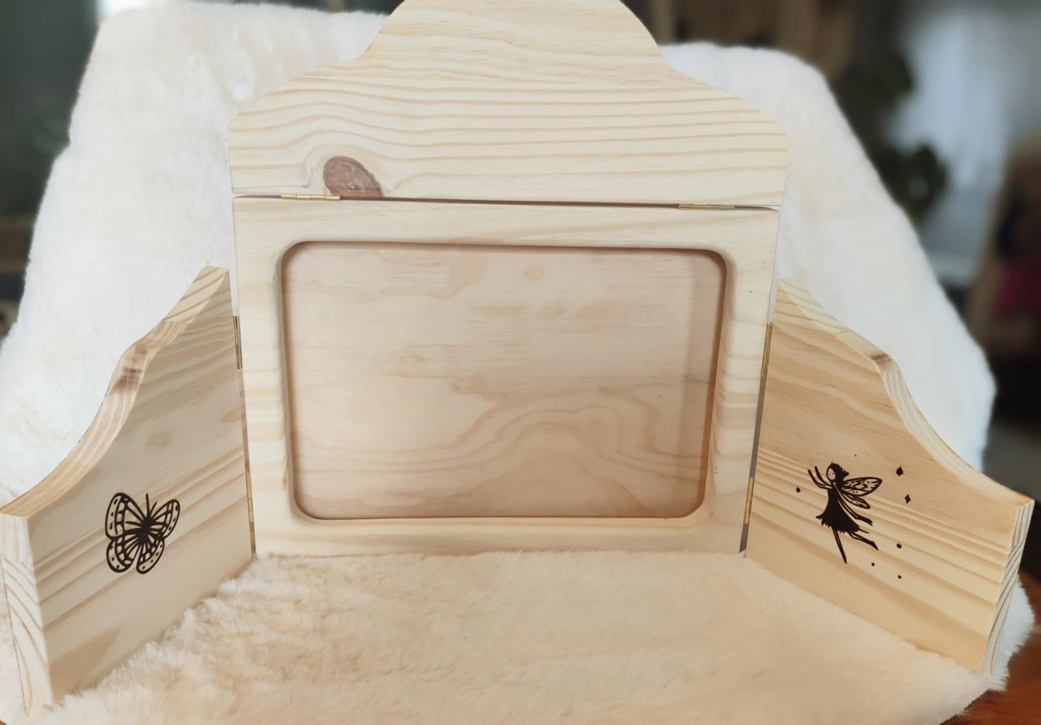 Butaï en bois pour une vingtaine de feuilles A4 plastifiées tout en bois vernis norme jouet petit système de fermeture personnalisable