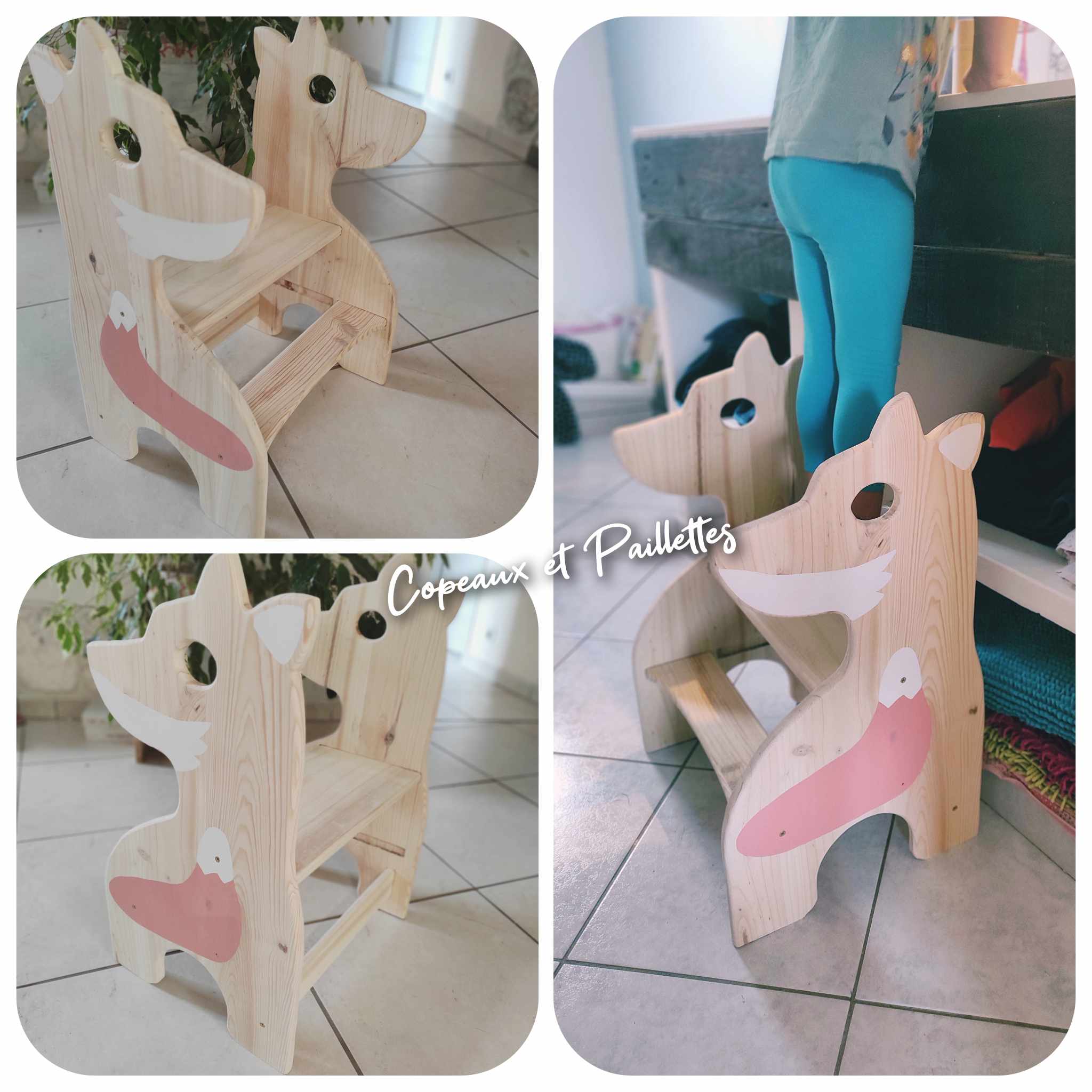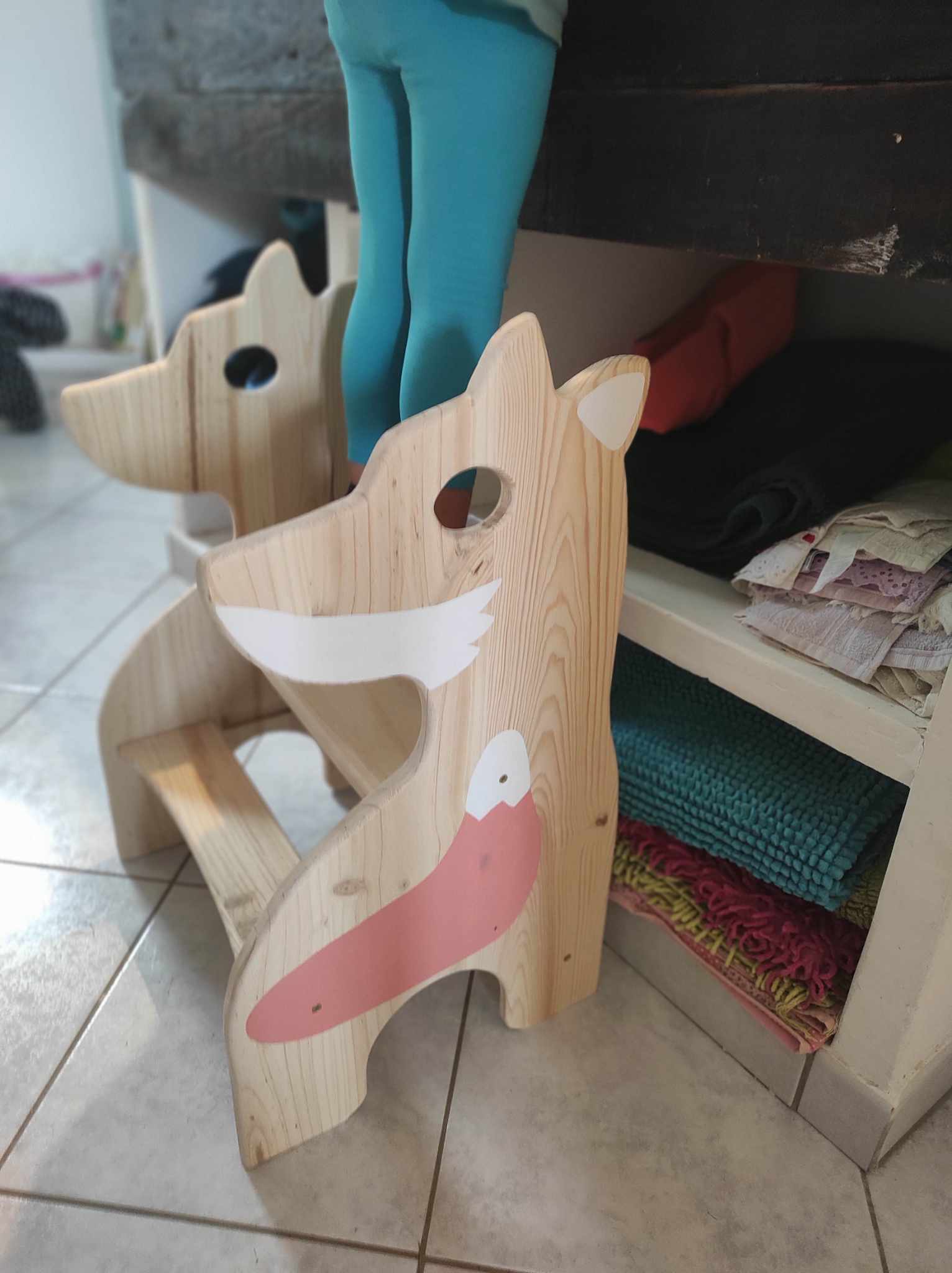 Marche-pieds fabriqués main, à la demande. Ils permettent à l’enfant de développer son autonomie aux toilettes ou la salle de bain pour se brosser les dents.