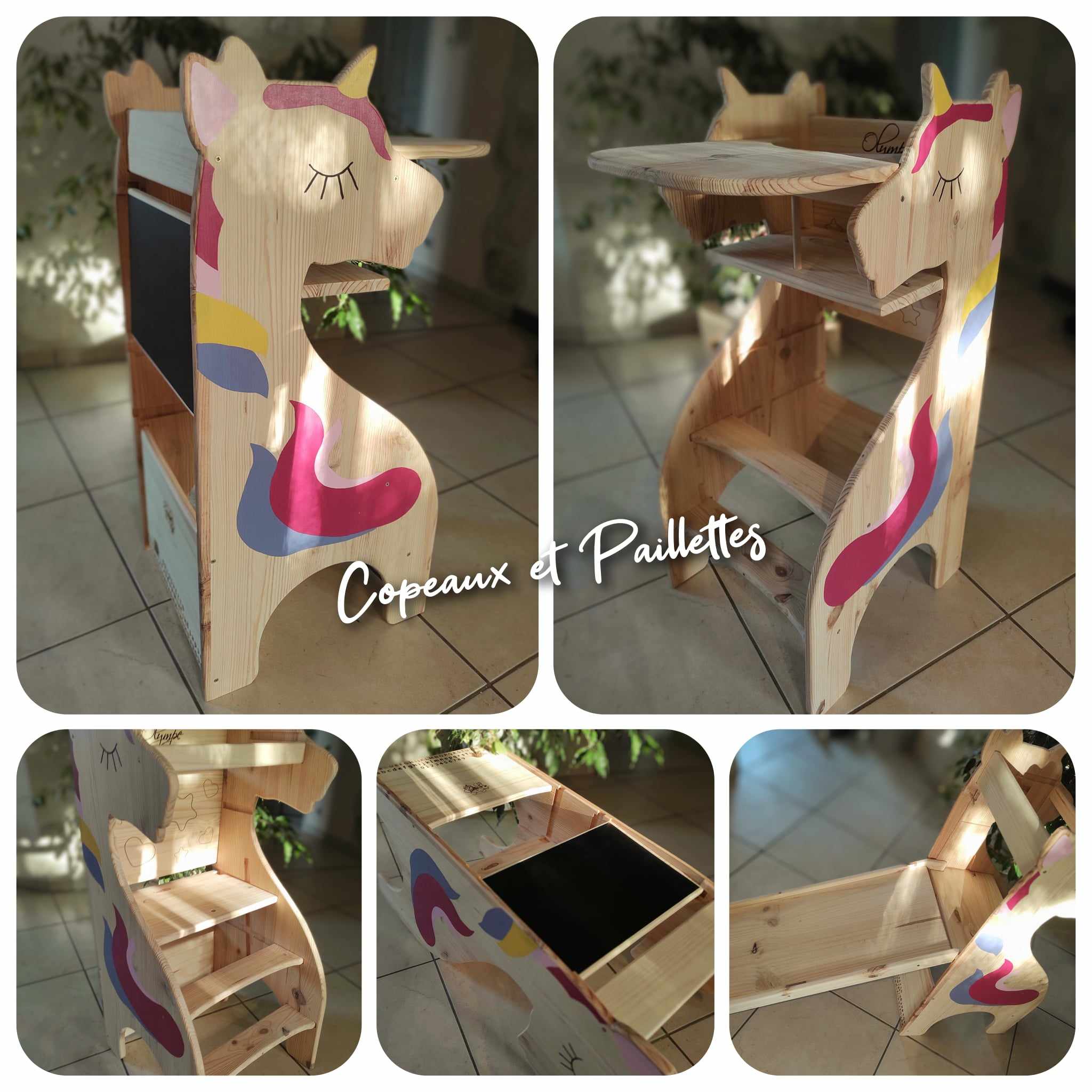 Tout notre travail est réalisé à la main, avec soin et précision. Nous veillons à ce que chaque détail soit vérifié et revérifié. Chaque tour licorne est même testée en supportant un poids d’au moins 80 kg, ce qui garantit leur robustesse et leur durabilité.